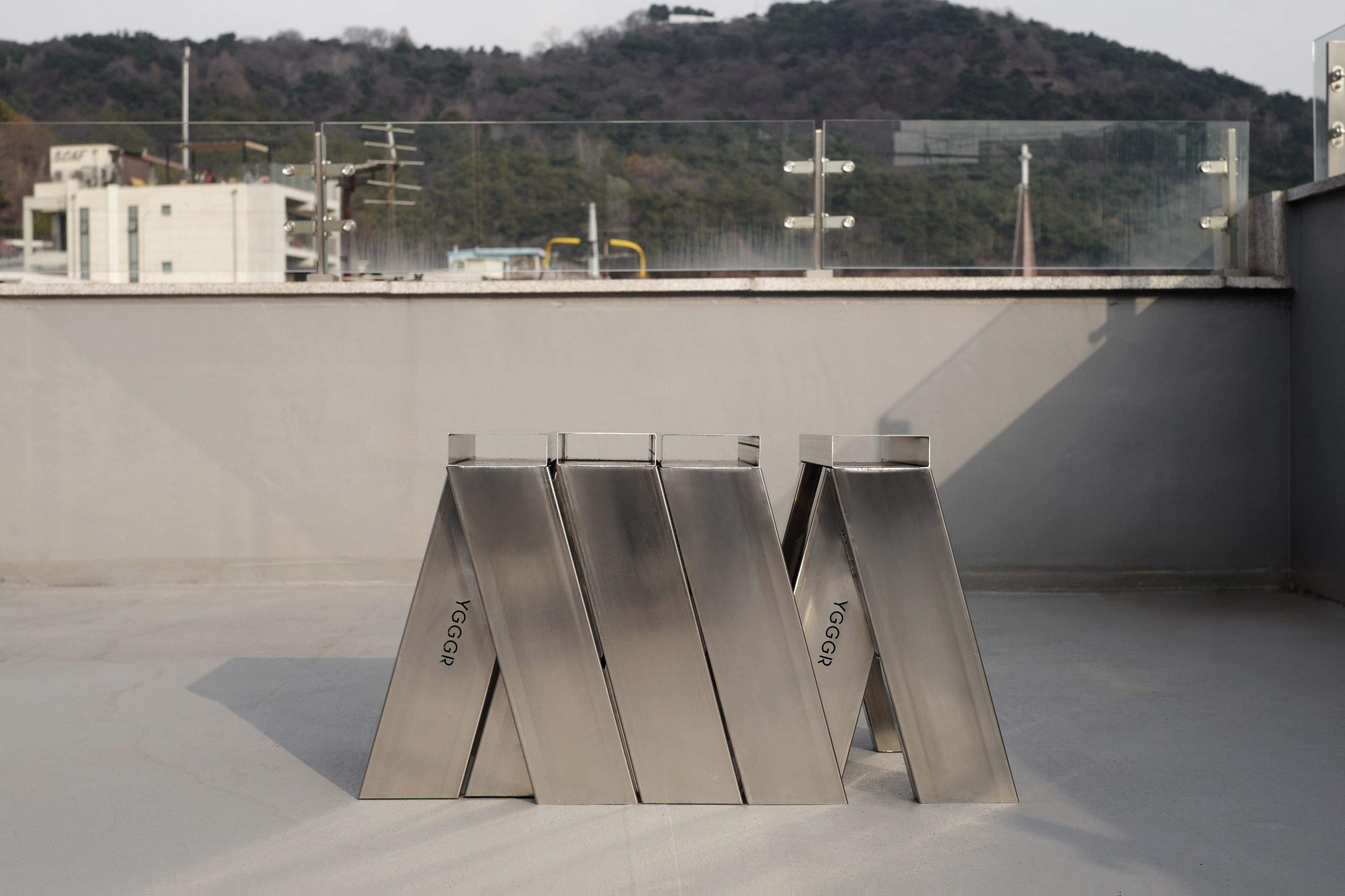 ‘ISHINOMAKI LABORATORY’의 ‘AA STOOL’이 가진 단순한 구조적 개념을 참고하여, 이를 금속이라는 재료로 재해석해 본 YGGGR의 스터디 프로젝트입니다. 우리는 이 구조가 지닌 조형적 가능성과 균형감에 주목하여, 하나의 참고 구조(REFERENCE STRUCTURE)로서 스터디에 활용하였습니다.
